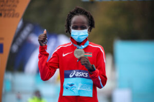 Kenia vei kaksoisvoiton Tokiossa naisten olympiamaratonilla. Voittaja oli aiempi puolimaratonin vuosien 2016 ja 2020 maailmanmestari Peres Jepchirchir ajalla 2.27.20.