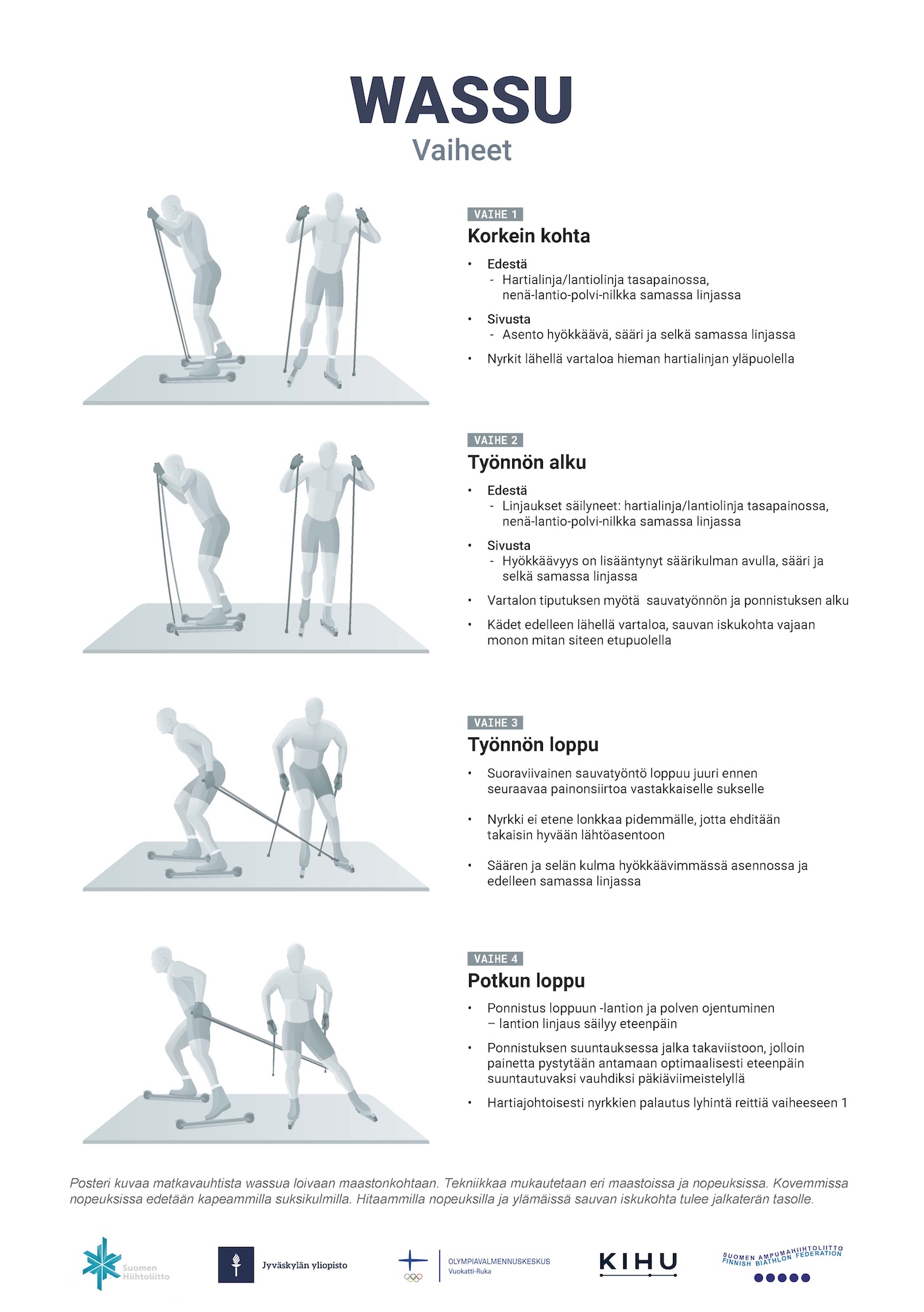 – Vaiheiden osalta tasatyönnön lähtöasento ja wassun korkein kohta. Lähtöasennot pitää saada hyvälle mallille, kun miettii, voiko syklin eri vaiheissa tekniikka lähteä pyörimään posterissa esitetyllä tavalla, Ohtonen sanoo.