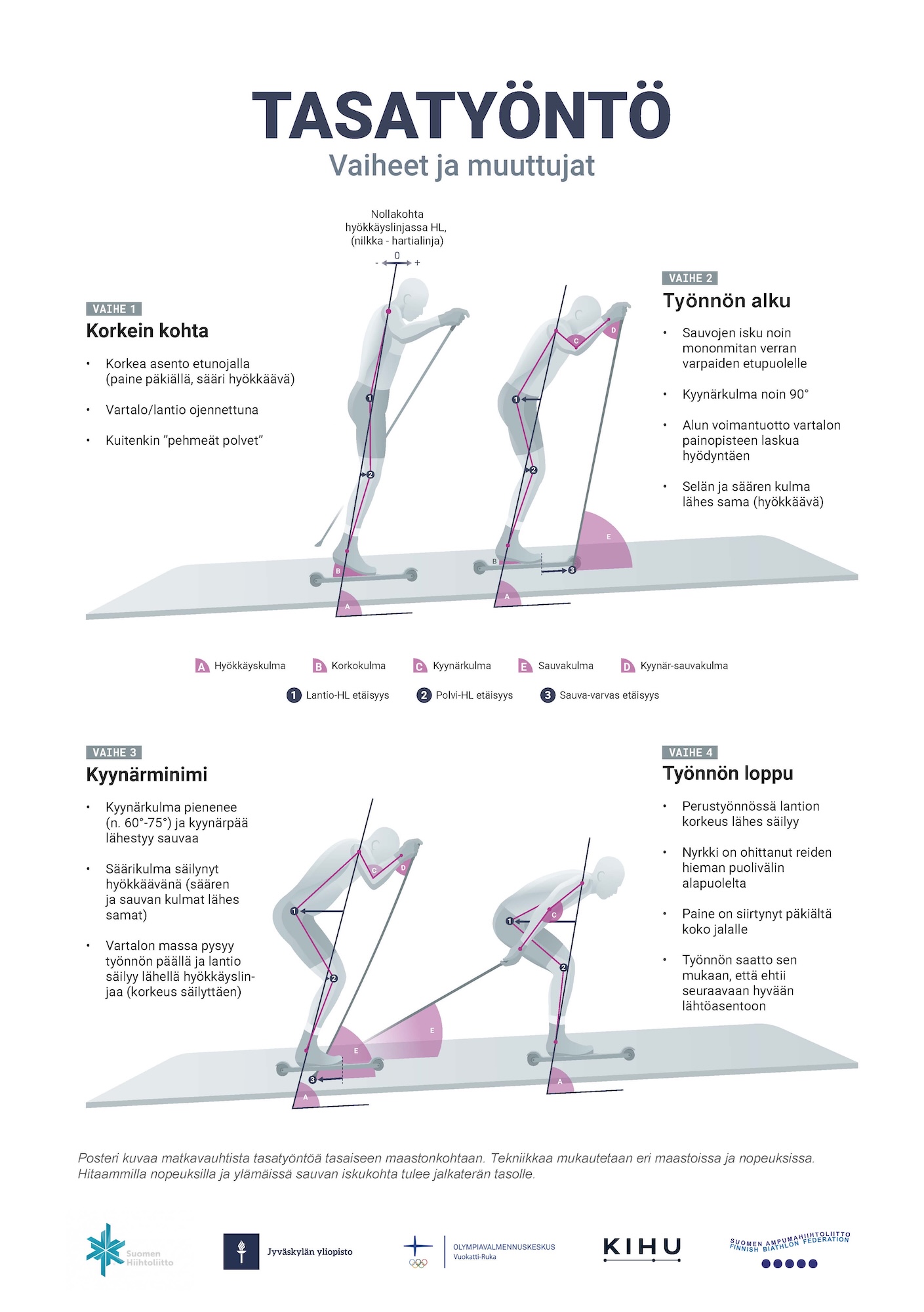 Tasatyönnön posteri esittää nivelkulmia ja sauvatyönnön kulmia. Ne juontuvat työn taustasta. Hiihtoon ja sittemmin eri urheilulajeihin Suomessa kehitetty Coachtech-mittausjärjestelmä mahdollistaa tasurin kulmien määrittelyn hiihtomatolla.
