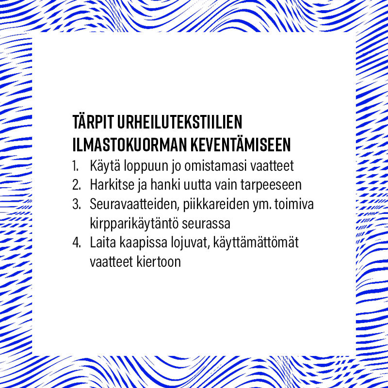 Keskivertosuomalainen hankkii vuodessa 40 uutta vaatetta. Urheilijoilla kulutus on keskivertoakin suurempaa.