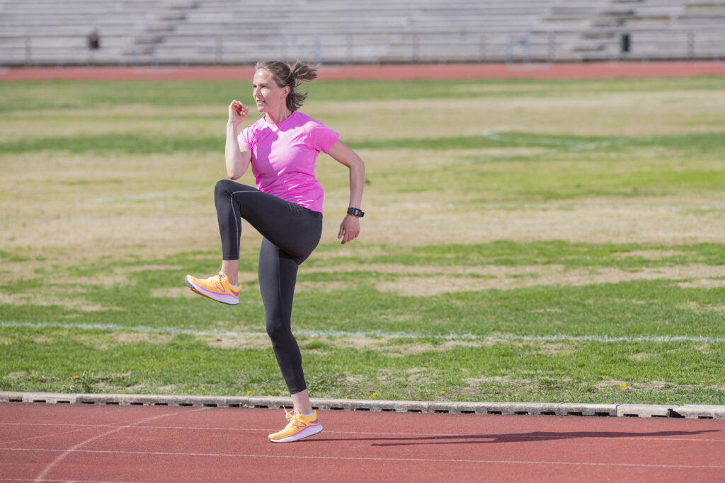 Tee ripeää polvennostojuoksua, pidä kädet rytmikkäästi mukana. Toista liikettä noin 10–15 metriä.