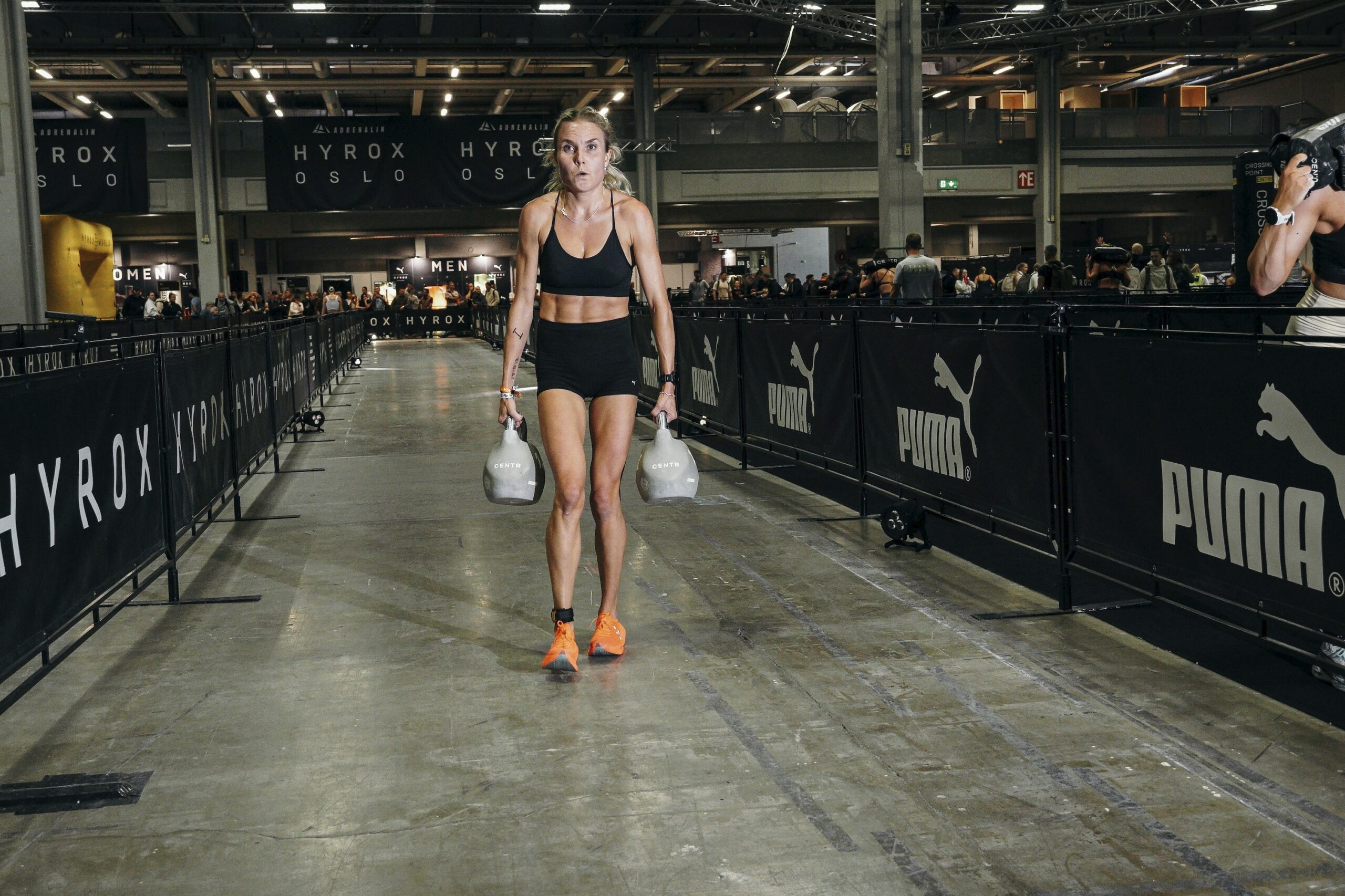 Hyrox on vauhdikas kilpailuformaatti, jossa vuorottelevat juoksu ja kahdeksan erilaista voimaliikettä, kuten kelkan veto, burpee-hypyt ja soutu. Kestävyysjuoksija Suvi Miettinen osallistui ensimmäistä kertaa hyrox-kisoihin.