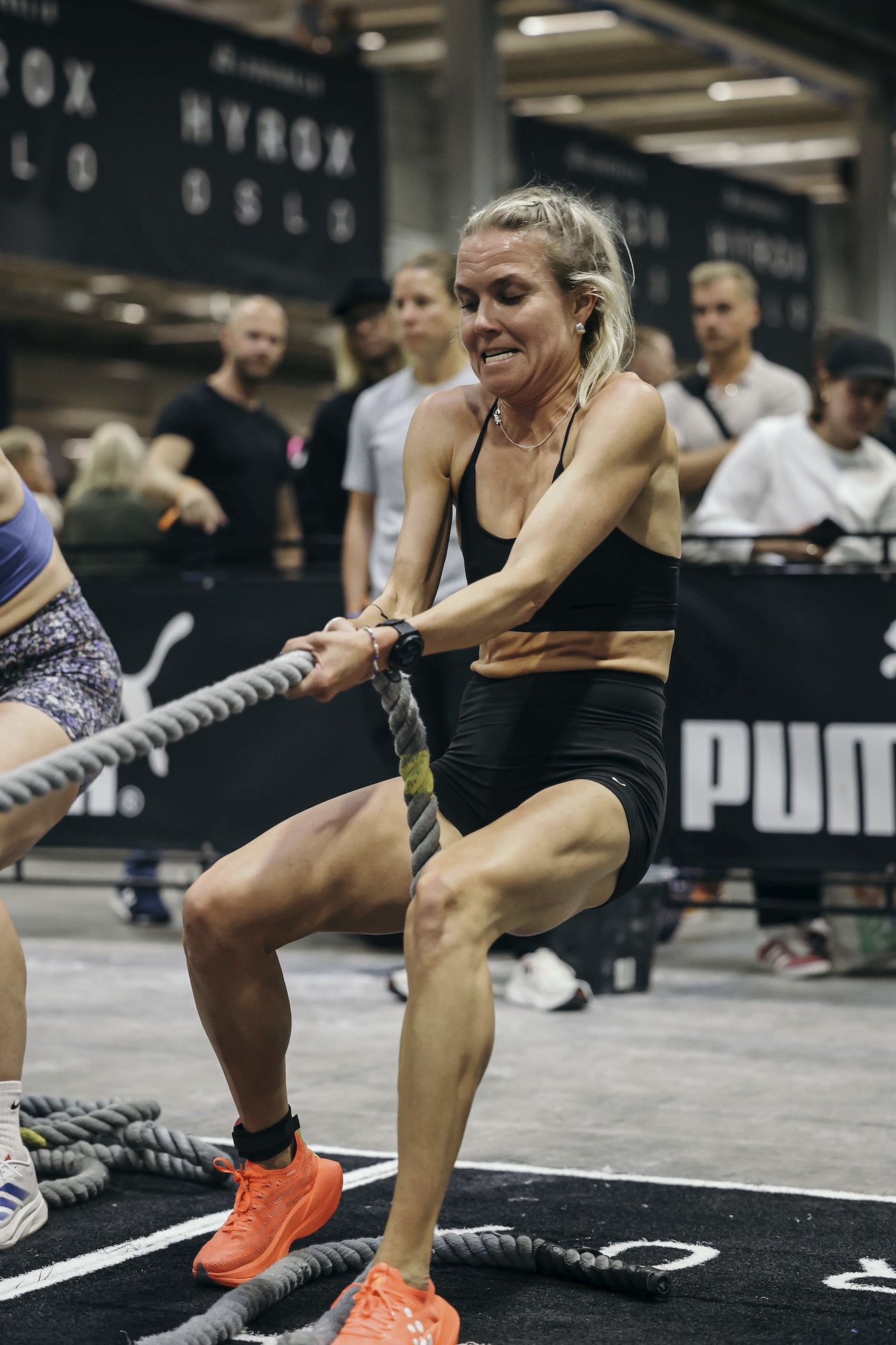 HYROX OSLON verryttelyalueella pääsin testaamaan ensimmäistä kertaa muun muassa kelkan työntöä ja vetoa. Huomasin järkytyksekseni, etten saanut kelkkaa edes liikkeelle. Paniikki nousi hetkeksi kurkkuuni. Mietin, että nyt kävi Miettisen mimmille kylmät ja saan syyttää tästä vain itseäni. Hioin hieman tekniikkaani, jonka jälkeen sain kelkkaa vaivoin liikahtamaan eteenpäin. Tämä riitti antamaan itseluottamusta lähtemään viivalle. Aion ainakin yrittää enkä luovuta!