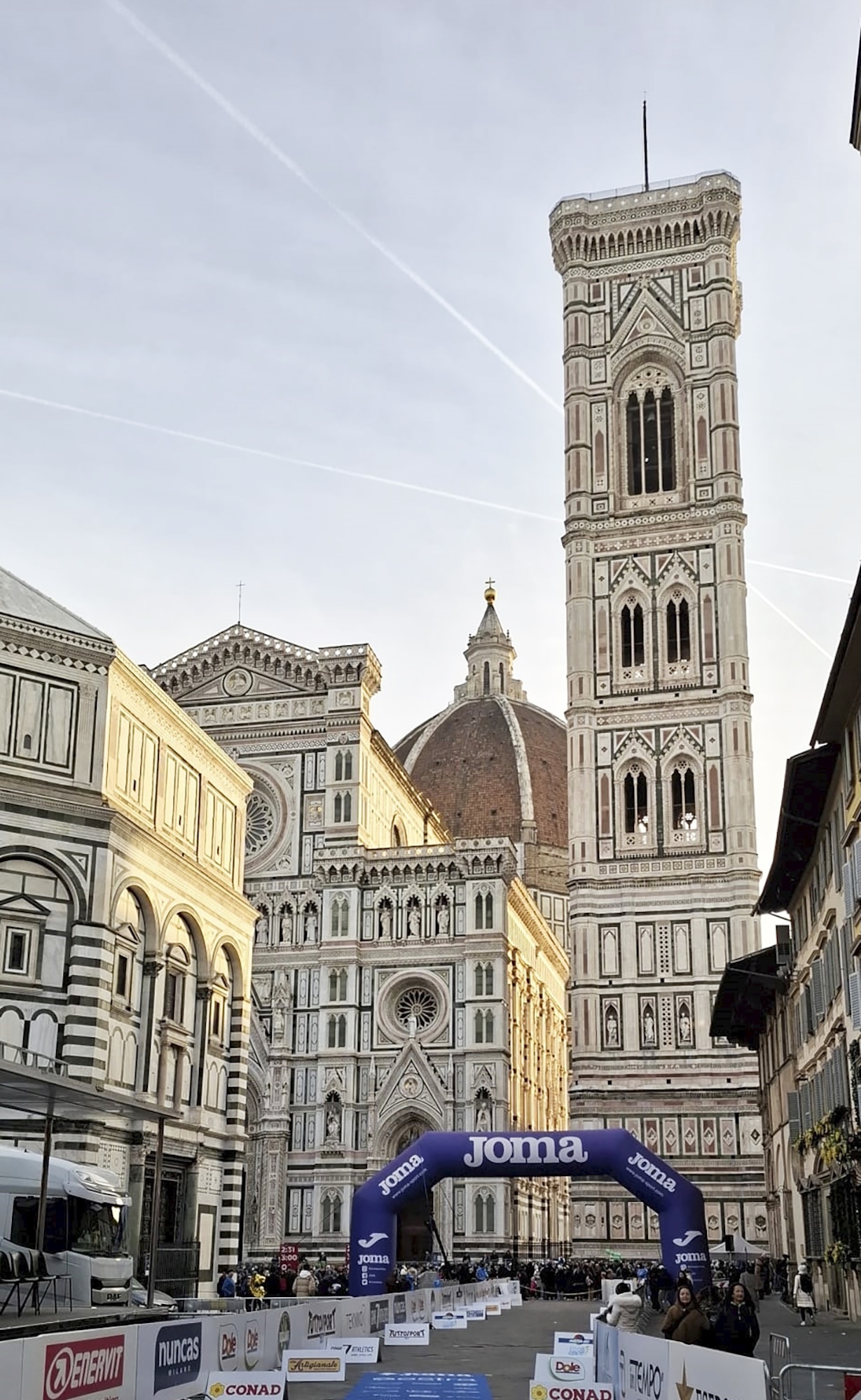 Koronavuotta lukuun ottamatta vuodesta 1984 keskeytyksettä järjestetystä Firenzen maratonista on kasvanut Italian toiseksi suurin juoksutapahtuma. Yli 10 000 kaltaistani maratonjuoksijaa hyppii paikallaan pitääkseen itsensä lämpimänä marraskuun viimeisen aamun koleassa säässä.