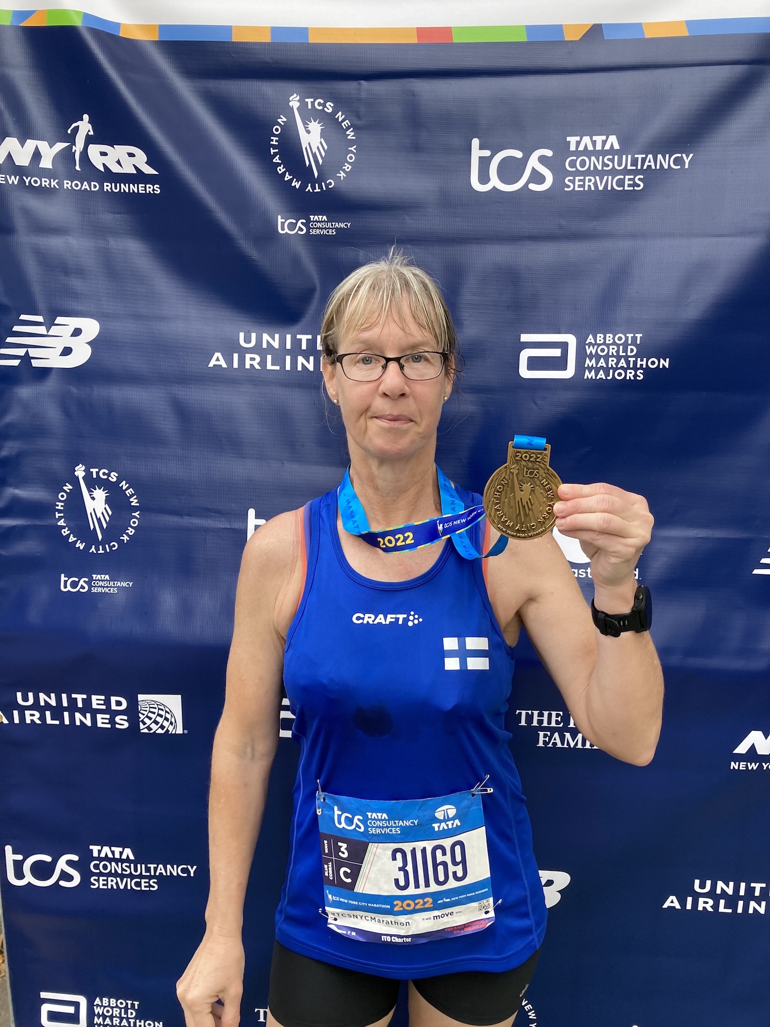 – Yleensä otan mukaan kahdet juoksuvaatteet, pitkät ja lyhyet. New Yorkin maratonille lähtiessä sääennuste näytti viileää keliä, joten otin mukaan vain pitkät juoksuvaatteet. Paikan päällä sää olikin jotain aivan muuta ja jouduin pikaisesti ostamaan shortsit ja lyhythihaisen paidan, hän kertoo.