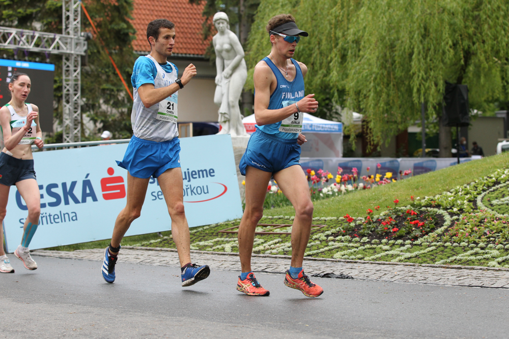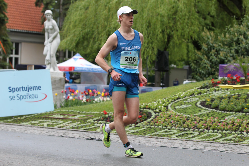 Jerry Jokinen käveli Poděbradyn 19-vuotiaiden 10 kilometrillä kevään toisen ennätyksensä. Edellinen 10 kilometrin ennätys syntyi hiljattain Espoossa ja koheni nyt 52 sekunnilla aikaan 43,06. Se toi kilpailussa 11. sijan.