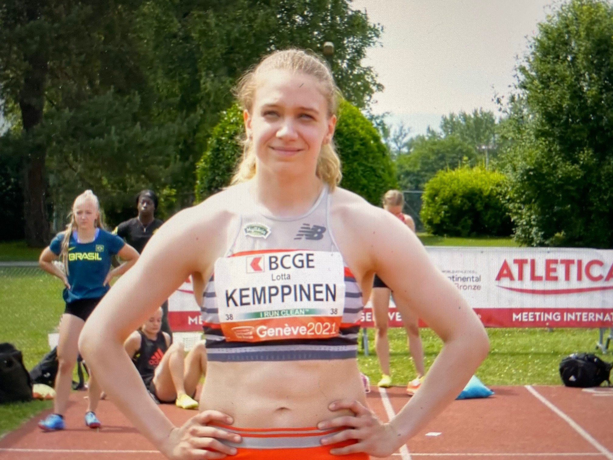 Lotta Kemppinen pinkoi Genèvessä naisten 100 metrin kuumassa erässä ajan 11,45 ja sijoittui kahdeksanneksi. Juoksun voitti Dohan MM-kilpailujen 200 metrin pronssimitalisti Sveitsin Mujinga Kambundji ajalla 11,07.