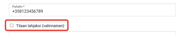 2. Valitse kassalla puhelinnumeron alta ”Tilaan lahjaksi”