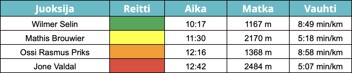 Kilpailijoiden reitinvalintoja tarkastellessa huomaamme, että vihreitä ja mäkiä on kunnioitettu jopa odotettua enemmän. Rastiväliä on kierretty teitä hyödyntäen todella kaukaa – jopa kauempaa kuin suomalaisissa maastoissa tulisi koskaan mieleen. Rastiväliajoista voimme kuitenkin todeta, että näillä reitinvalinnoilla on nopeimmillakin kavereilla tullut tappiota suoraan valintaan verrattuna. Rastivälin nopeimmin juossut Ruotsin Wilmer Selin on toteuttanut välin pelottomasti suoraan saniaisviidakkojen läpi. Näin ovat tehneet myös rastivälin toiseksi ja kolmanneksi nopeimmat suunnistajat, mikä kertoo tämän vaihtoehdon olleen paras.