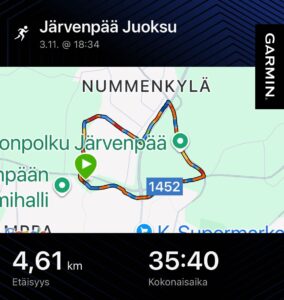 30.11 Järvenpäässä aurinko nousee 8:57 joten kukonlaulun aikaan on tarkoitus startata eli kello 9:00 maailmanhistorian ensimmäinen Järvenpään maraton. Reittinä nollakierros + 9 x 4.61 km lenkki. Tapahtuma on omatoiminen eli jokainen huolehtii omasta huollosta ja ajanotosta. Aurinko laskee 15:19 joten päivänvalossa on hyvä mahdollisuus suorittaa tämä nautinto. Reittiä ei ole suljettu muulta liikenteeltä ja jokainen osallistuu tapahtumaan omalla vastuulla. Ilmoittautumiset faceen klikkaamalla ”osallistun” tai harakka piste janne at gmail piste com