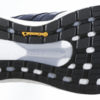Välipohja on rakennettu tukevammaksi sisäsyrjän puolelta. EVA:sta tehty yläosa nousee myös korkeammalle kuin kengän ulkoreunalta. Vakautta lisää muovinen kiertojäykiste, joka jatkuu sisäsyrjän puolella takaosaan ja nousee siellä vähän ylöspäin. Lesti sopii kapeaan jalkaan ja kantakuppikin istuu tiukasti. Tiheän ja hieman työlään nauhoituksen kaksi alinta reikää on erotettu muista. Kärkeen saa näin halutessaan kätevästi tilaa ja yläosan voi nauhoittaa kireämmälle. Hyvin hengittävä päällinen on varustettu keinonahkaisilla vahvikkeilla. Tempo ei turhia koreile, mutta se on suorituskykyinen ja riittävän tukeva vauhdikkaisiinkin vääntöihin. Kokeile tarvittaessa normaalia isompaa kokoa.
