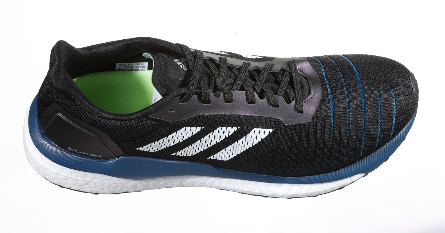 Solar Drivessa on massiivinen boost-pohja, jota on vahvistettu lisäosalla läpi jalan, mutta Adidaksen torsion-tukea ei ole. Ulkopohja on tahmeaa kumia ja yhtenäinen.