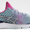 Matalaprofiilinen Hyper Tri on superkevyt, tarkka ja tunnokas kilpuri. Juostessa tuntui, ettei jalassa ollut kenkää ollenkaan, niin kevyttä ja luonnollista sillä oli askeltaa, puhisi naistestaajamme. Kimmoisaa vaimennusta on niukasti, mutta käyttötarkoitukseen nähden mukavasti. Hyper Tri sopii lähinnä kevytrakenteisille kokeneille juoksijoille. Pieniä kiviä keräävä pohja toimii parhaiten asvaltilla. Kaarevalestinen tossu rullaa erinomaisesti ja sillä tulee porhaltaa kovaa. Yleistuntuma on aggressiivinen ja miltei hyökkäävä. Kapeahkolestinen kenkä pitää jalan kuosissaan. Pehmeä ja saumaton sisäosa mahdollistaa käytön ilman sukkia, jolloin ei haittaa vaikka pohjan reiät imaisevat vettä. Sukkamaisen iltin kätevä vetoaukko helpottaa kengän ripeää pukemista. Päällinen mukautuu nätisti jalan muotoon. Hyper Tri on tehty triathlonin pikamatkoille. Se on kuitenkin tehokas raaseri myös tasokkaalle juoksijalle. Huomioi ostotilanteessa, että kenkä on kooltaan vähän normaalia pienempi. Naisten väri sai erityiskiitosta.