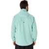 Vetoketjullisen rintataskun lisäksi molemmissa kyljissä on piiloon jäävät sivutaskut, joissa voi kuljettaa kätevästi puhelinta tai muuta pikkutavaraa. Heijastimia on edessä, selkäpuolella ja hihoissa. Miesten mintunvihreä takki keräsi kehuja. Näin pirteitä miesten juoksuvaatteita soisi näkevän yleisemminkin.