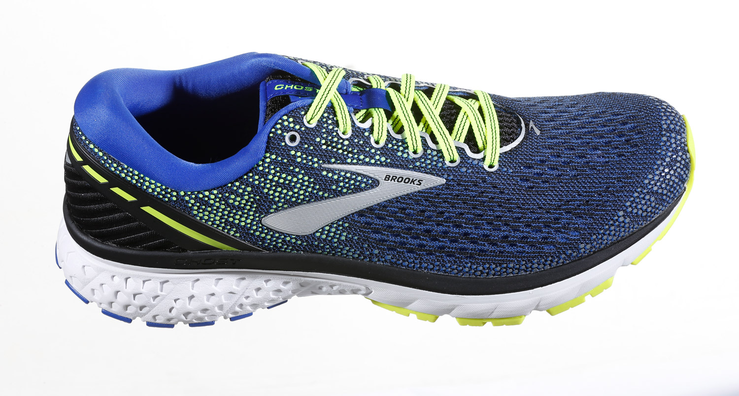 Brooksin Ghost on tarkoitettu neutraalisti askeltavalle. Yksinkertaisessa rakenteessa välipohja on yksivahvuinen ja päällinen sukkamaisesti kudottu. Nauhoitus on pitkä. Kantakuppi vahvan oloinen.