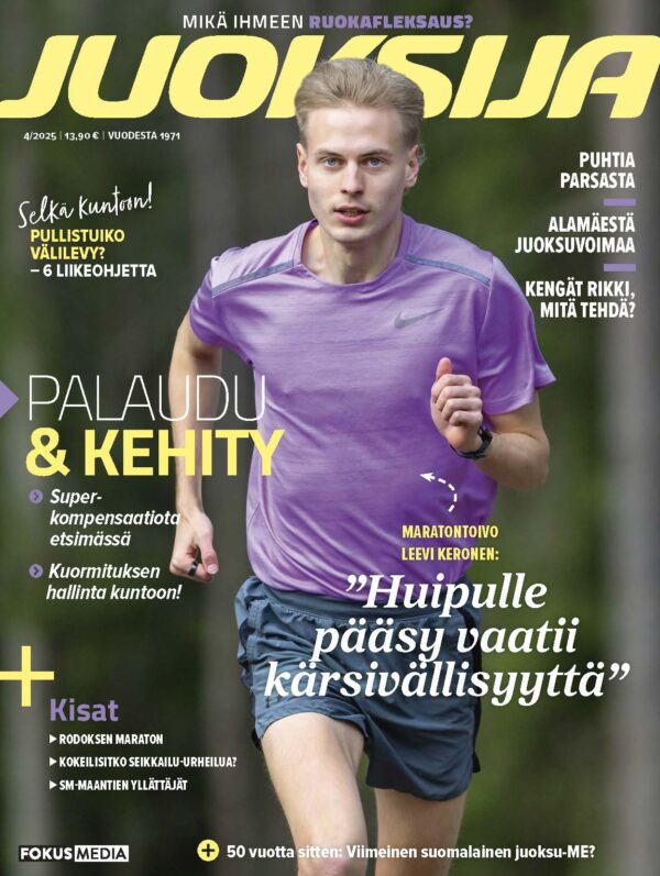 Vuositilaus 8 numeroa + Polkujuoksija. Tilaaja saa kotiin kannetun lehden lisäksi lukuoikeuden Juoksija-lehden digitaaliseen näköislehteen ja lehtiarkistoon, pääsyn Juoksija.fi digin treeniohjelmiin sekä Juoksija-kortin.