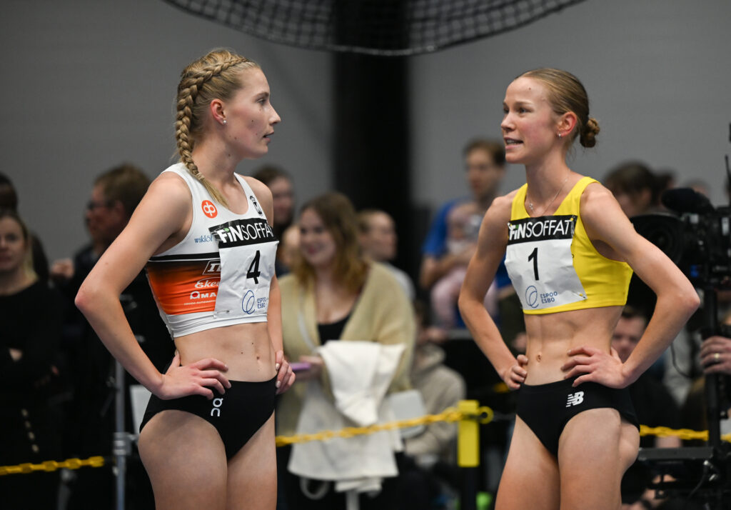 Ilona Monosen ja Nathalie Blomqvistin yhteenotto pitkästä aikaa sähköisti naisten 3000 metrin tunnelmaa SM-halleissa Espoon Kameleonten-hallissa. Kisa oli kuitenkin sopuinen, kun juoksijat tekivät sovitusti yhteistyötä vauhdinpidossa.
